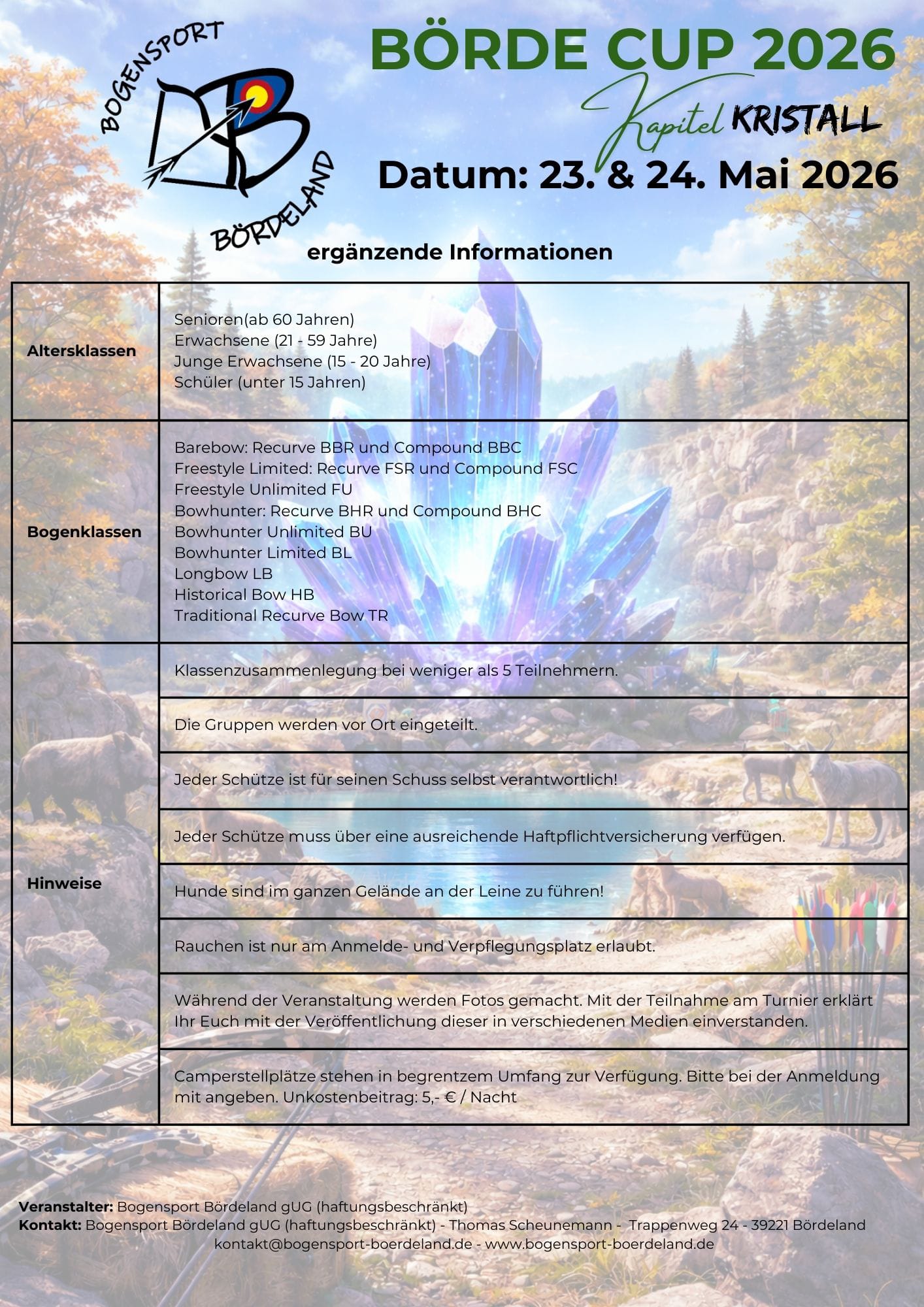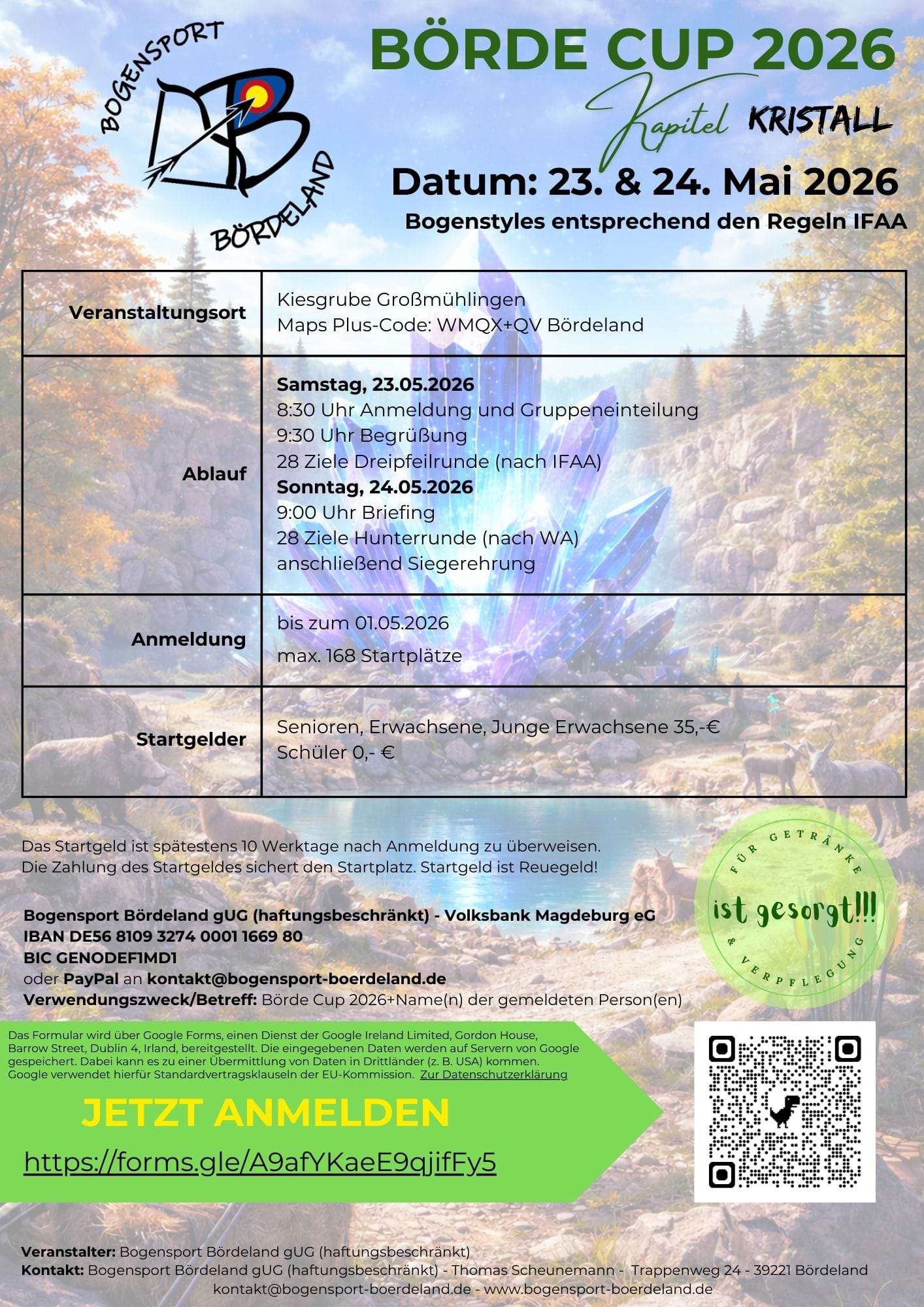 Am 23 und 24. Mai 2026 findet der Börde Cup in der Kiesgrube Großmühlingen im Bördeland statt. Anmeldungen erfolgen direkt beim Bogensport Bördeland.